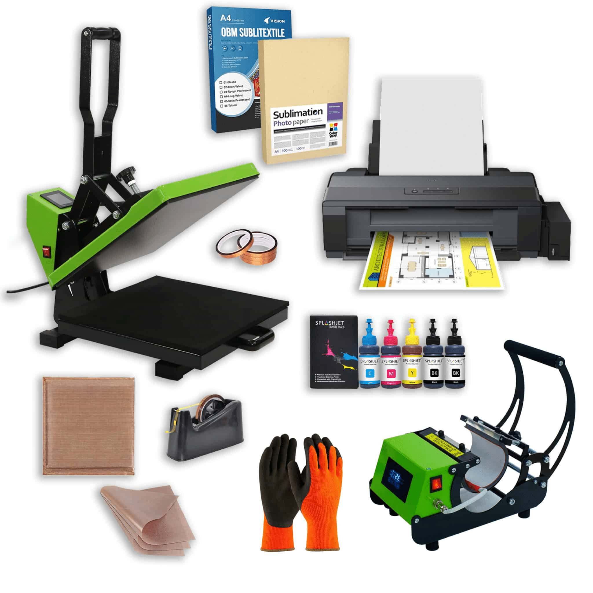 A szett két profi hőprésből áll: az egyik kifejezetten bögrékre szabott, kényelmes és pontos nyomást biztosítva, a másik pedig nagyobb méretű, sík felületekre – például pólókra – tökéletes. Mindkettő digitális vezérlésű, így egyszerűen beállíthatod a hőmérsékletet és az időt, hogy mindig tökéletes eredményt kapj. A nyomtató pedig kimondottan szublimációs munkákra tervezett, élénk színekkel és megbízható minőséggel garantálja, hogy a mintáid életre keljenek.