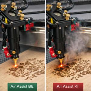 Air Assist: levegő elfújó rendszer segítségével elkerülhetjük a vágáskor keletkező láng képződését, az anyag begyulladását, kormolódását. Az IRIS air assist rendszere külön kapcsolóval és szabályzóval rendelkezik.