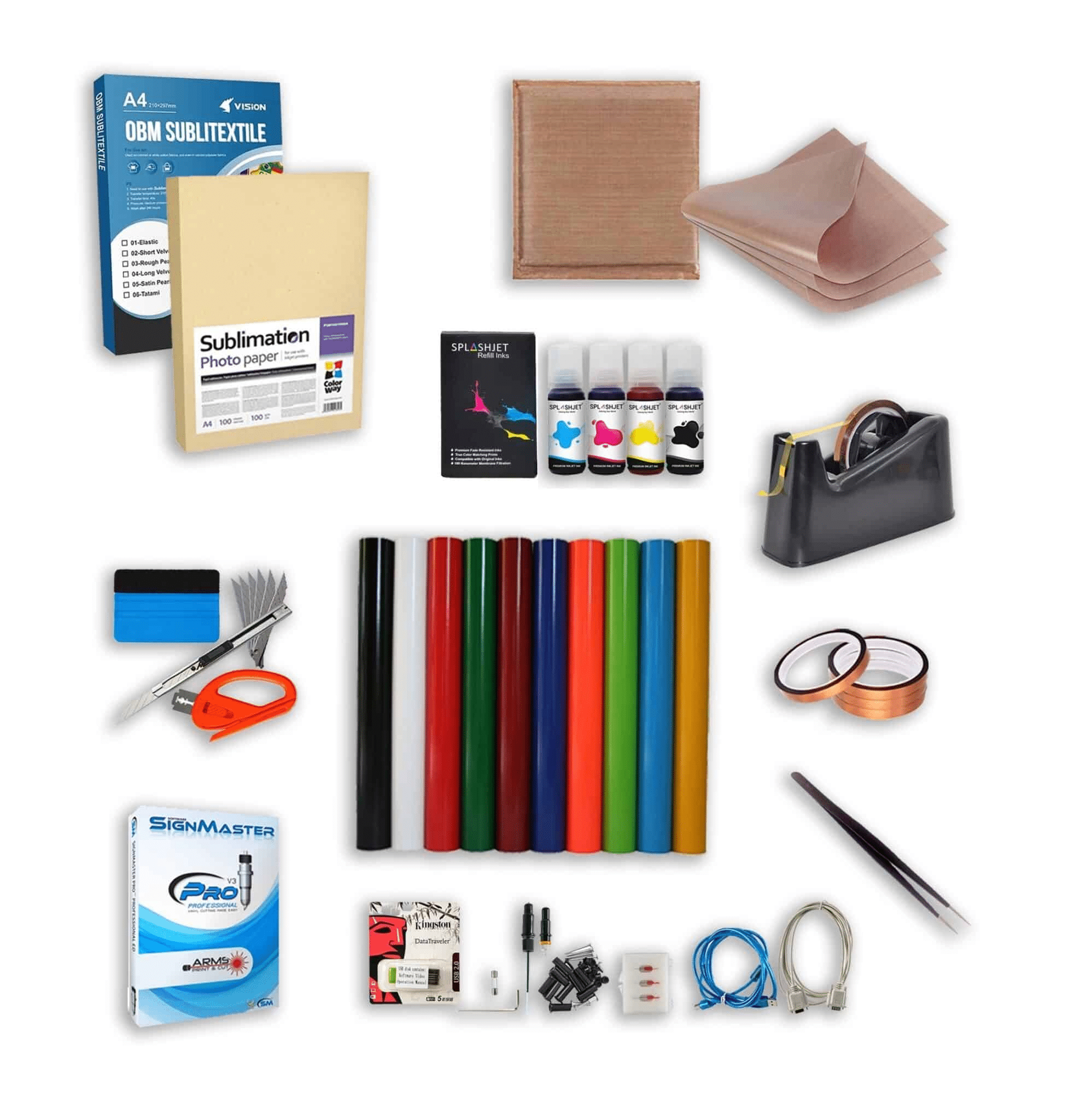 - Teljes körű megoldás szublimációhoz és vágáshoz: minden szükséges eszközt tartalmaz, így azonnal kezdhető a gyártás