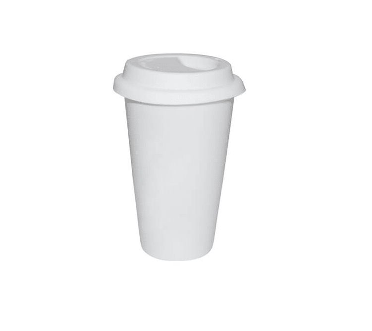 SZUBLIMÁLHATÓ FEHÉR KERÁMIA KÁVÉSPOHÁR FEDÉLLEL 300ml