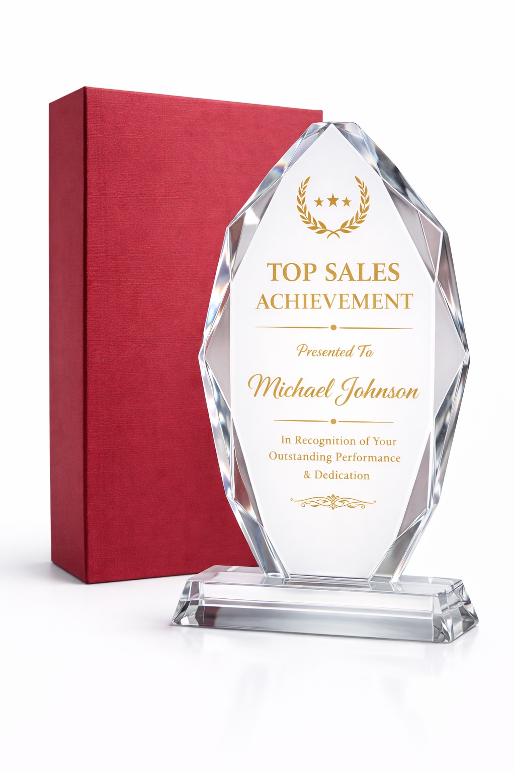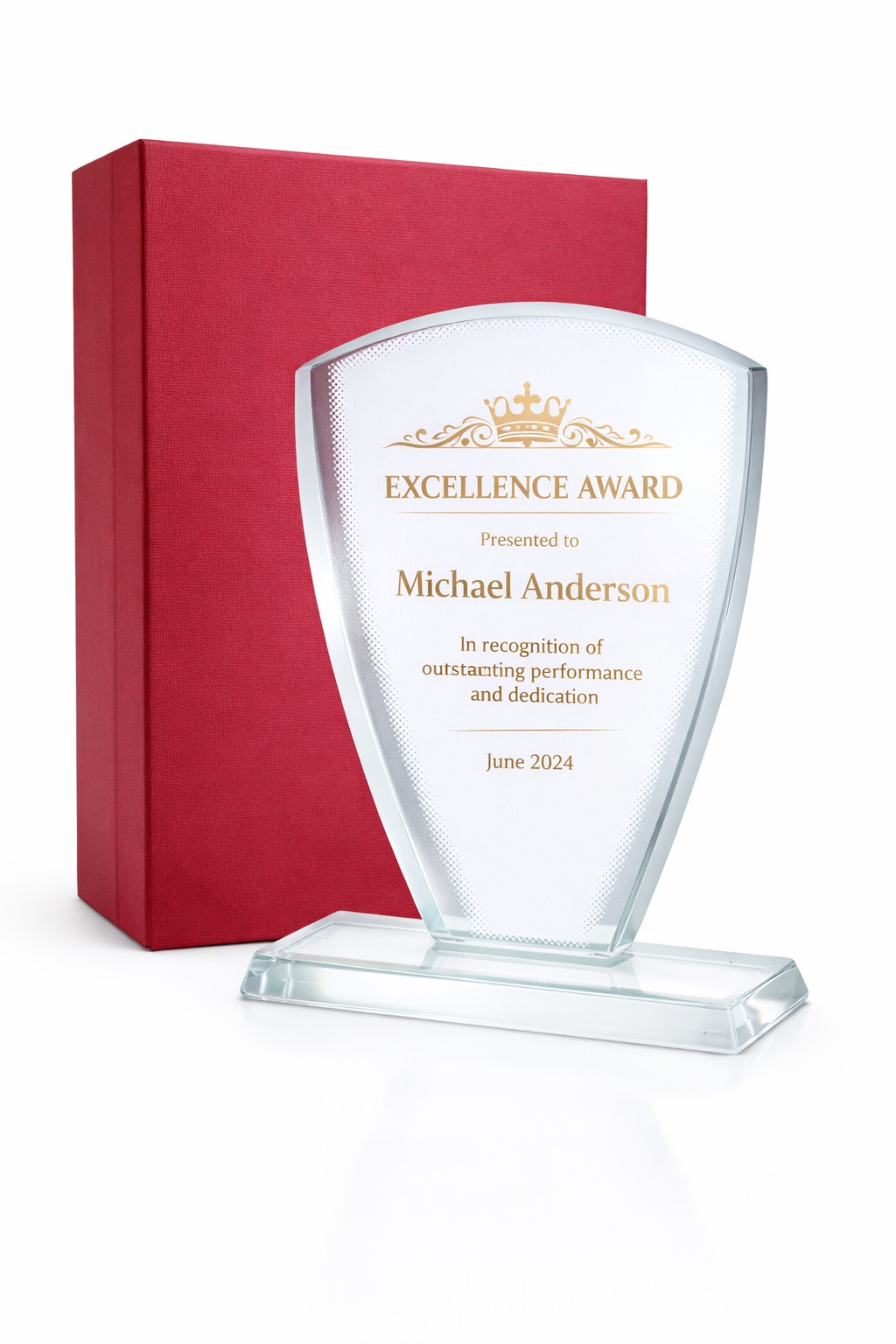 Elegáns üvegdíj, amely fotóminőségben szublimálható, így tökéletes a kiemelkedő teljesítmények megörökítésére. Több méretben elérhető, személyre szabott ajándékként vagy elismerésként is kiváló választás.